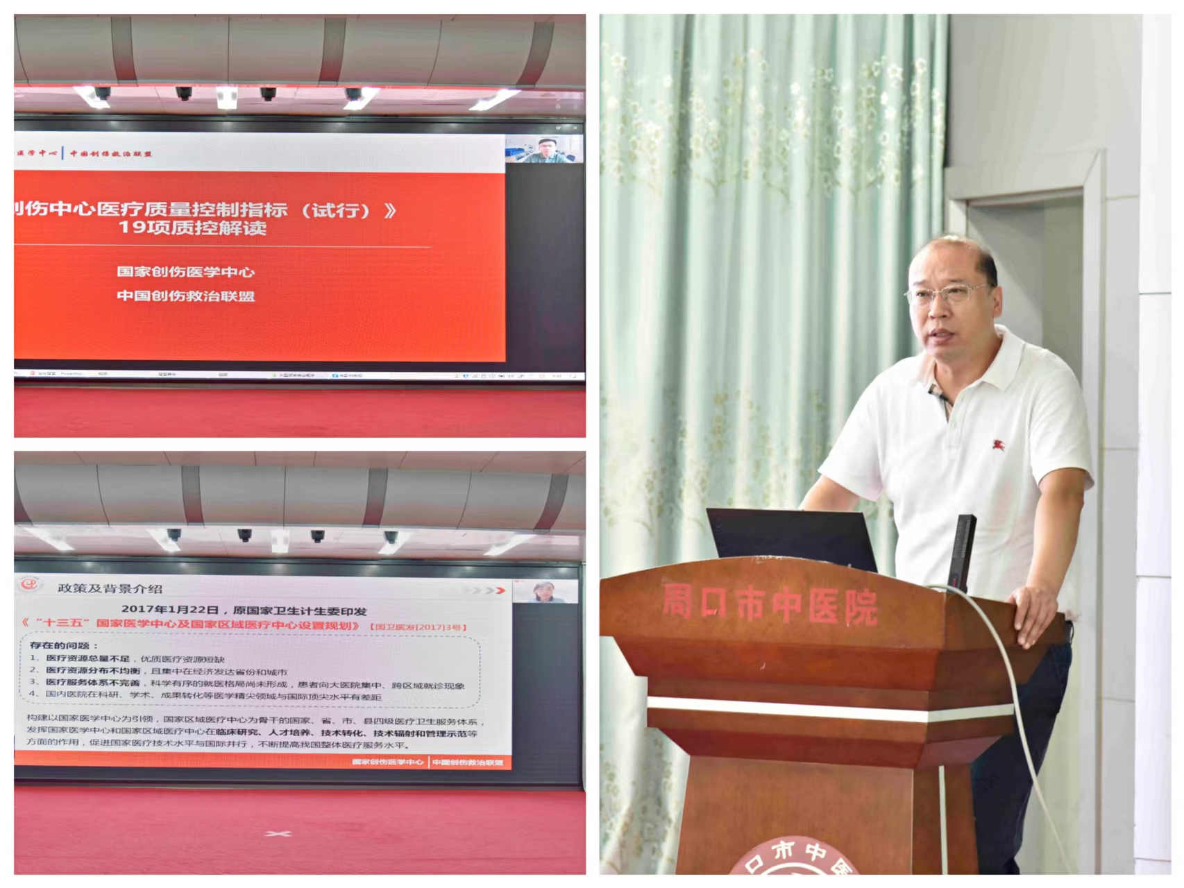 8月16日,“中國創傷救治聯盟創傷救治中心建設單位”簽約授牌儀式在周口市中醫院順利舉辦,周口市中醫院健康服務集團成員單位——周口市中醫院、項城市中醫院,同時成為“中國創傷救治聯盟創傷救治中心建設單位”。中國創傷救治聯盟常委、鄭州市中心醫院高新區醫院院長劉寒松、河南創傷救治聯盟辦公室副主任羅予正現場參加了簽約授牌儀式,中國創傷救治聯盟常委兼秘書長王天兵教授以線上方式參加簽約儀式。周口市政協副主席、市中醫院院長程維明講話并致辭,對專家們的指導表示熱烈地歡迎。授牌儀式由周口市中醫院副院長史衛東主持。