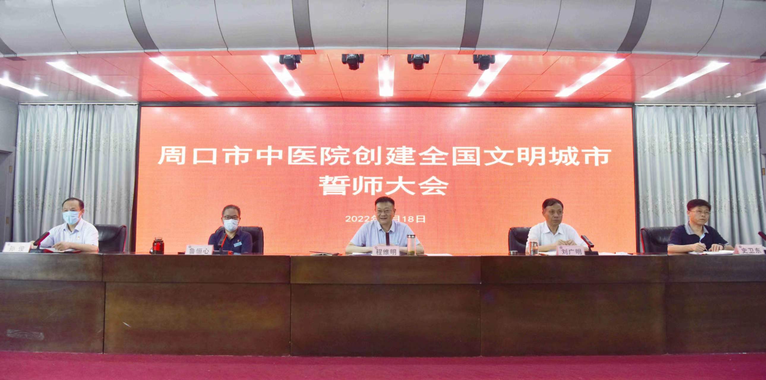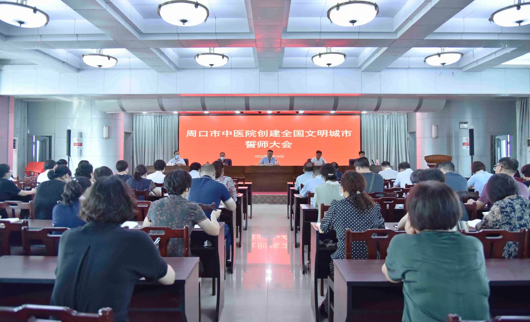 8月18日上午周口市中醫院召開創建全國文明城市誓師大會。周口市政協副主席、市中醫院院長程維明,市中醫院黨委書記劉廣明,副院長魯恒心,副院長史衛東、工會主席孫俊及各病區、醫技、行政相關科室負責人參會。
