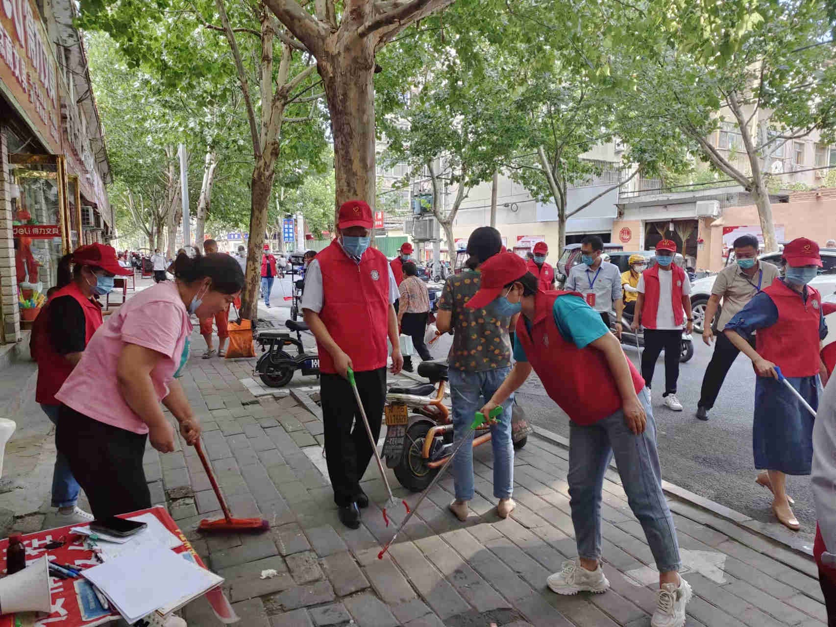 活動中,志愿者分工明確,密切協作,身穿紅馬甲,佩戴小紅帽,手拿夾子、小鐵鏟、掃把、簸箕等工具。對分包社區及路段進行“大清理,大整治”。大家不放過任何一個角落,不怕臟、不怕累,干勁十足,對垃圾死角、墻壁上的小廣告、雜草及煙頭進行全面清理;主動擺放不規范停車,協助維護交通秩序,制止不文明行為;并向群眾及沿街商鋪門店,普及創文知識,詳細講解創建文明城的重要意義,告知門店業主主動承擔門前三包責任制,動員群眾積極參與創建,營造人人參與創文的良好氛圍。他們用愛心和奉獻,讓大街小巷變得煥然一新。