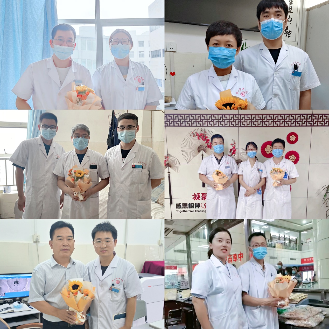 為迎接第38個(gè)教師節(jié),9月9日,周口市中醫(yī)院組織開(kāi)展教師節(jié)獻(xiàn)禮活動(dòng),2020級(jí)、2021級(jí)和2022級(jí)規(guī)培醫(yī)師向每一位帶教老師送上鮮花和節(jié)日的祝福。