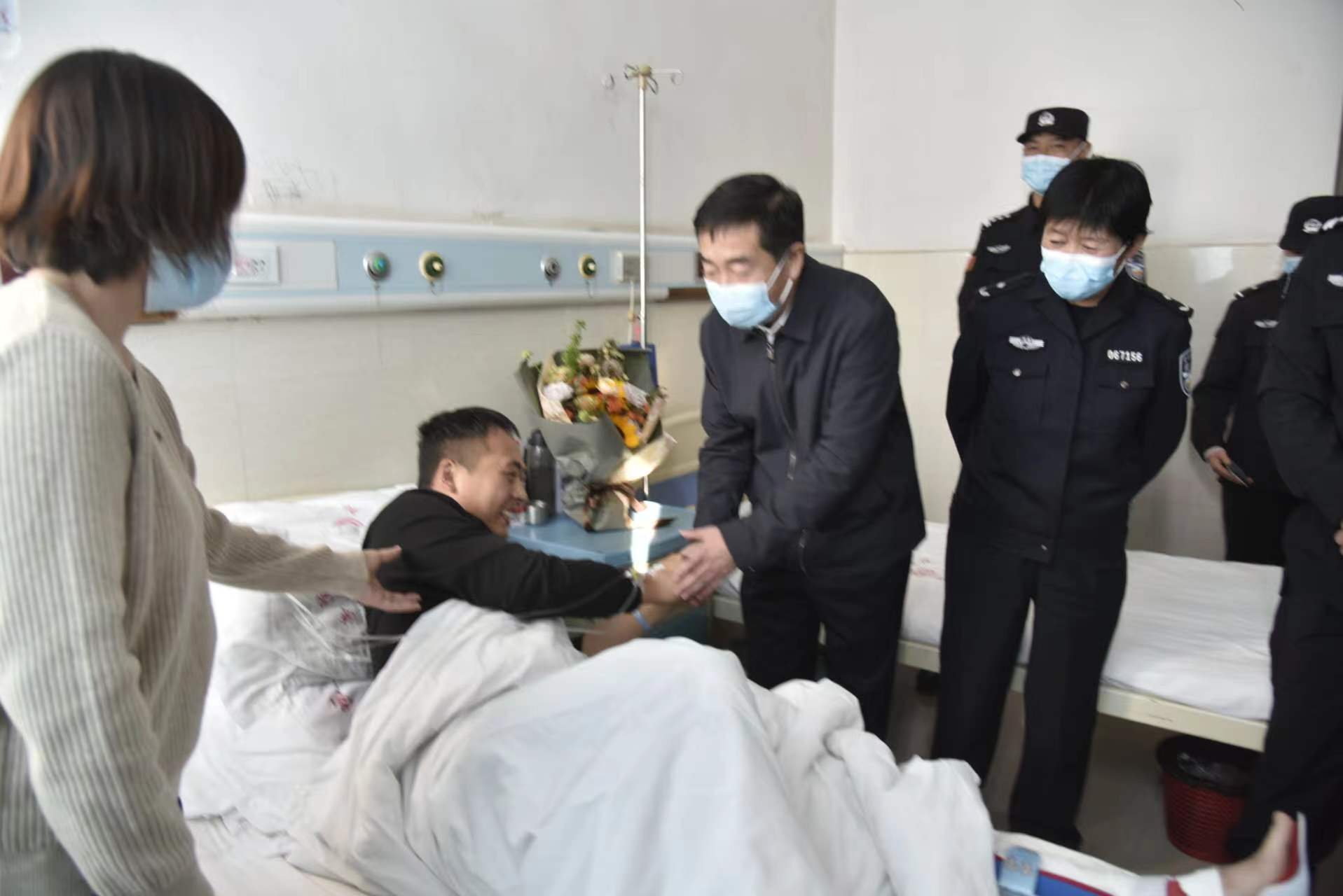 周口市副市長、市公安局長張元明到市中醫院看望救人英雄郭龍展
