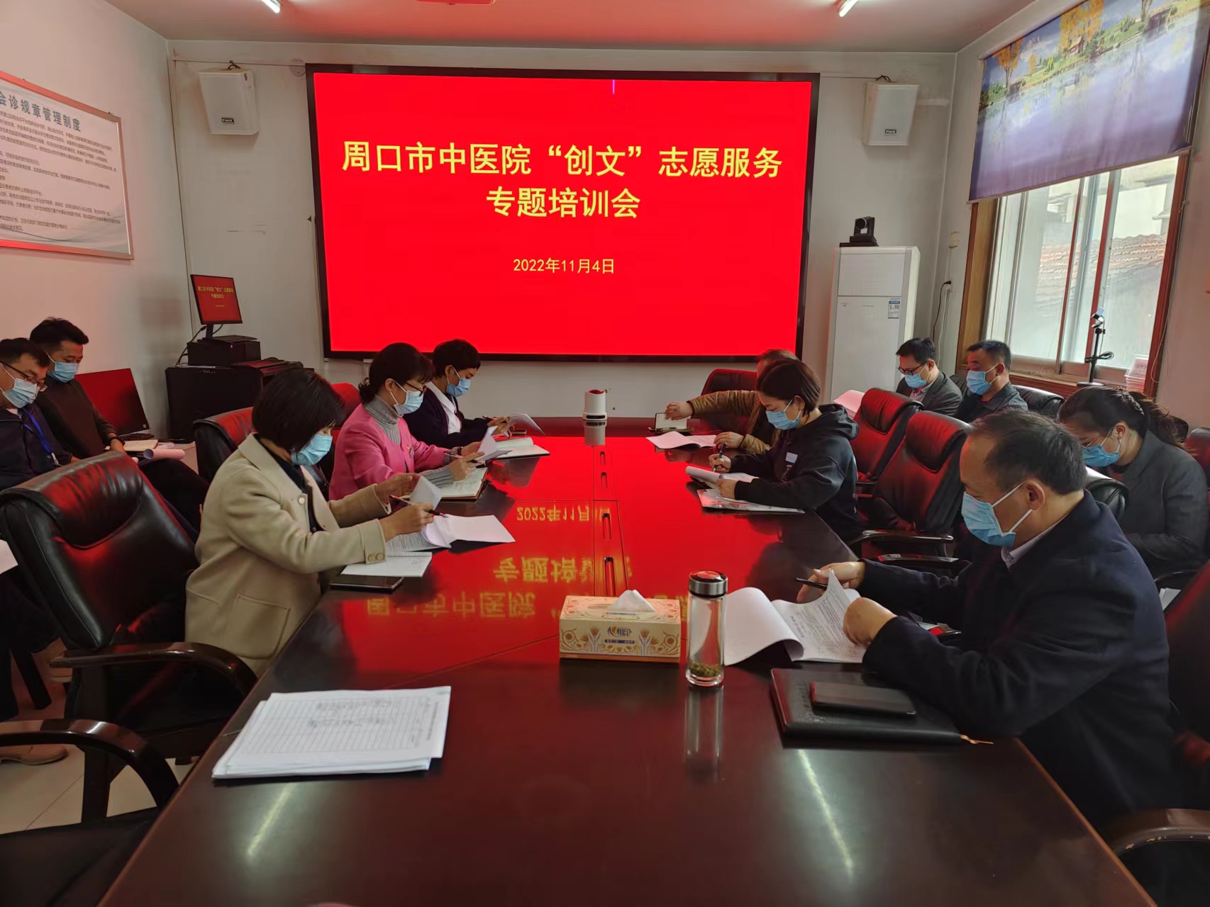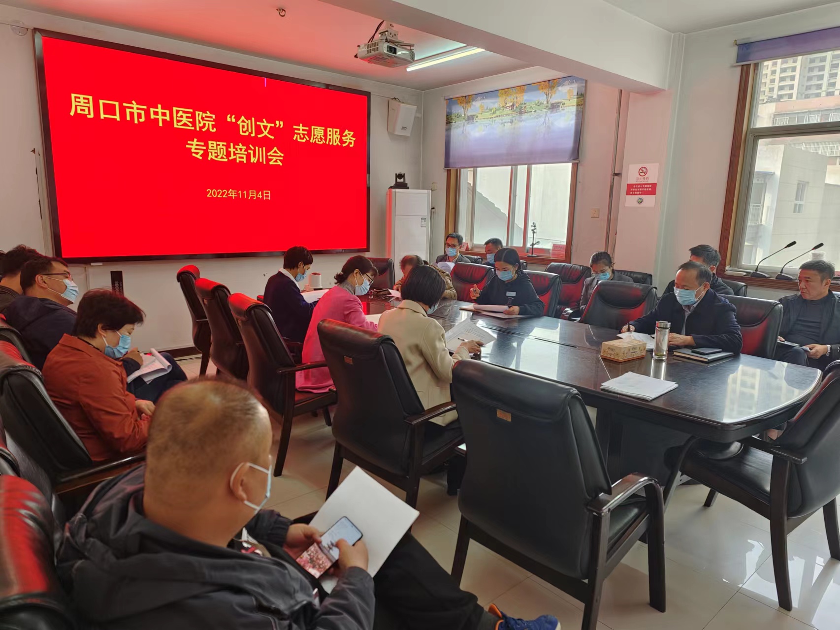 11月4日下午,周口市中醫院在三樓會議室召開“創文”志愿服務專題培訓會,號召全院黨員干部職工凝心聚力常態化做好創建全國文明城市各項工作。醫院黨委委員、工會主席孫俊及相關職能科室負責人參加會議。