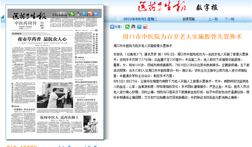 周口市中醫(yī)院為百歲老人實施股骨頭置換術