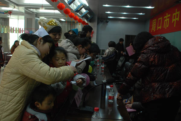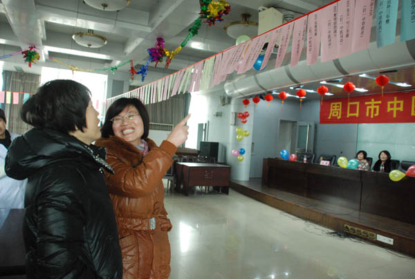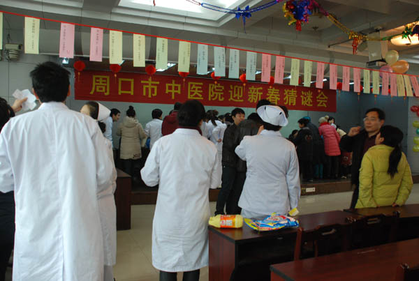 六樓多功能廳,紅色的燈籠,彩色的拉花,五顏六色的謎語條,充滿了喜慶的氣氛。宣傳科精心挑選了208條謎語,院辦、黨辦、工會、團委等工作人員將寫滿謎面的彩紙懸掛的整整齊齊。謎語內(nèi)容豐富,按難易程度分為A\B\C三類,包括突出中醫(yī)特色的中藥名、中醫(yī)詞語、成語、水果、動物、地名等,精美實用的獎品吸引著猜謎的人們。參加猜謎活動的職工絡繹不絕,大家在謎語條前,相互交流,認真思考。當猜中謎底后,都興高采烈的去領獎品。活動現(xiàn)場精彩熱鬧,喜慶祥和,既活躍了職工的文化生活,又促進了醫(yī)院和諧、健康、文明的精神風貌,為新年增添了樂趣。(宣傳科)