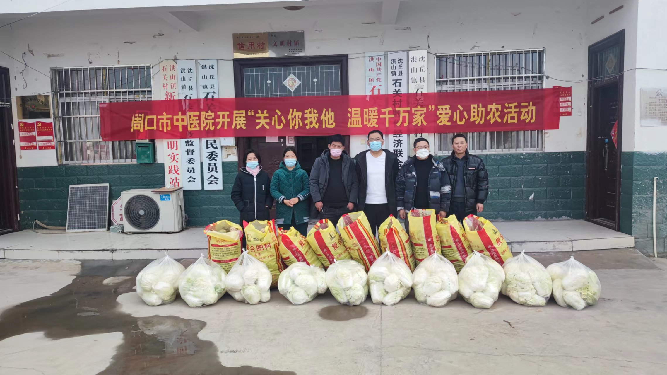 12月8日,周口市中醫院駐村工作隊在幫扶村沈丘縣洪山鎮石關村開展“關心你我他,溫暖千萬家”愛心助農捐贈活動。