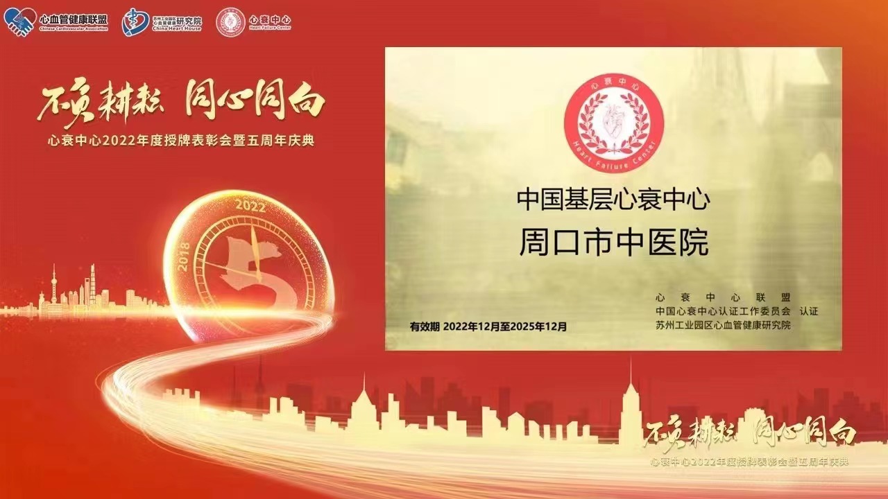 喜訊!周口市中醫院獲得“中國基層心衰中心”授牌