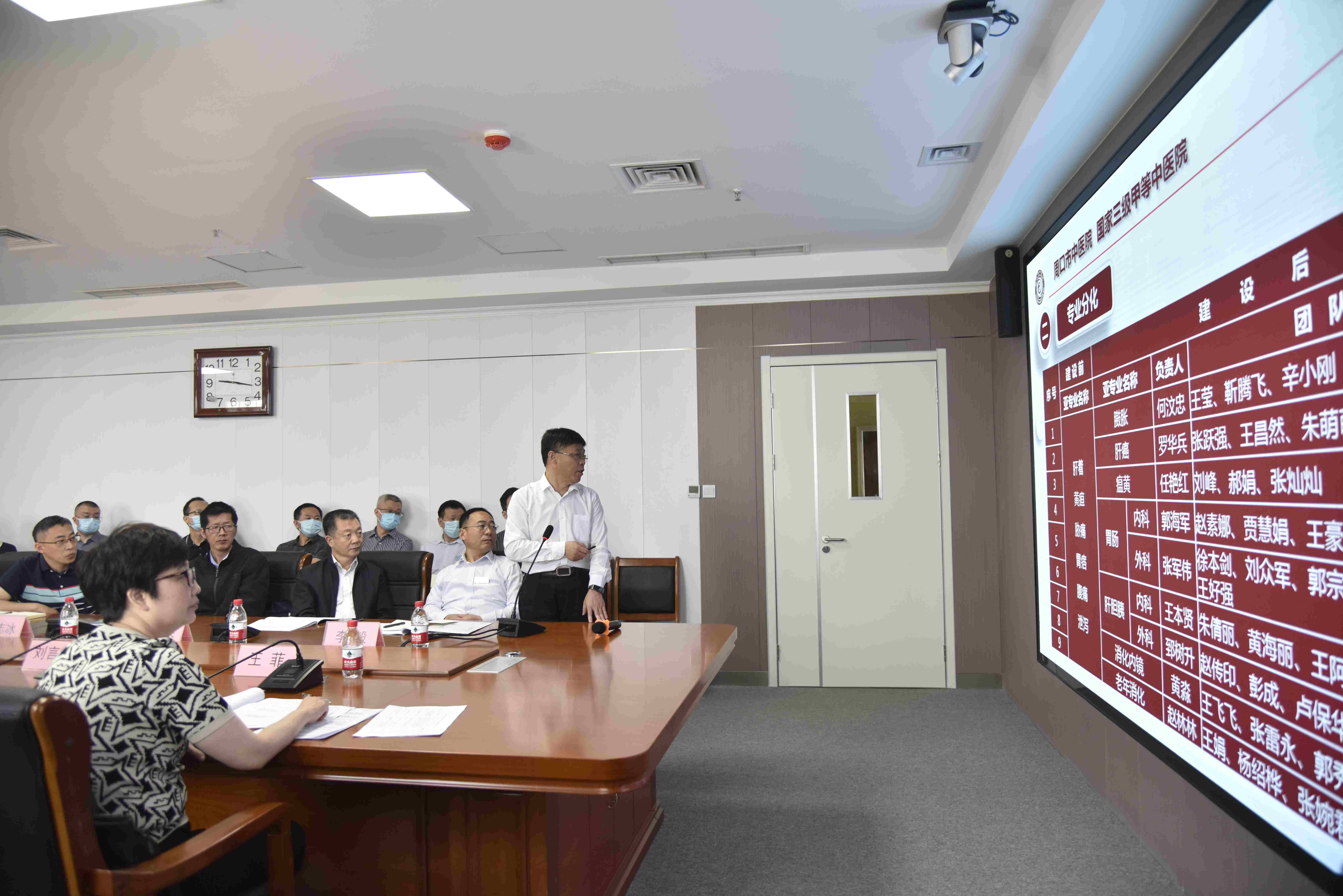 根據驗收程序,首先組織召開驗收匯報會。匯報會上,周口市中醫院院長致歡迎辭,周口市衛生健康委員會副主任李波講話,隨后河南省衛生健康委員會中醫處處長姬淅偉講話,緊接著驗收專家組組長曹向陽講話并布置驗收工作,最后周口市中醫院黨委書記史衛東匯報我院區域中醫肝膽脾胃專科診療中心建設情況。