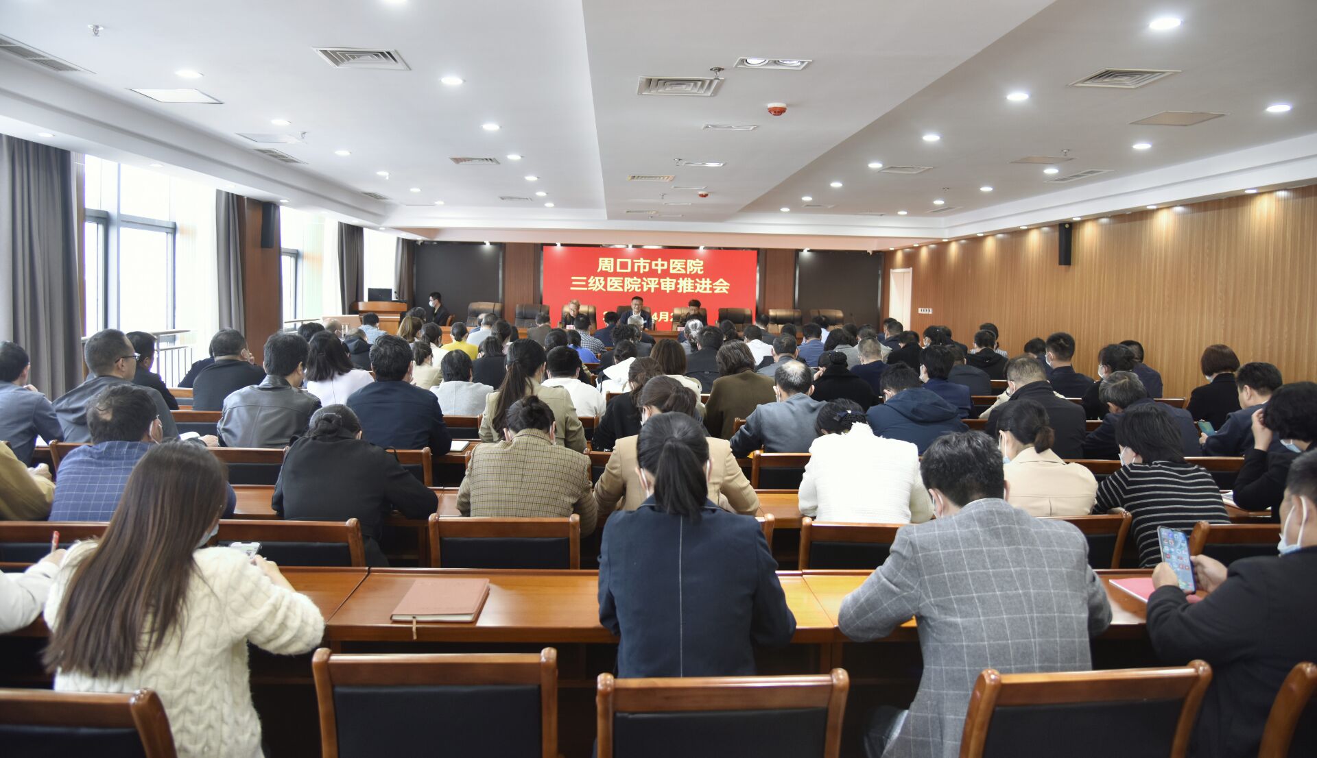為扎實推進三級醫院評審工作,推動醫院高質量發展,4月26日下午,周口市中醫院在二十樓會議室召開三級醫院評審推進會暨安全生產部署會。周口市中醫院黨委書記史衛東、副院長魯恒心及全體中層干部參加會議。