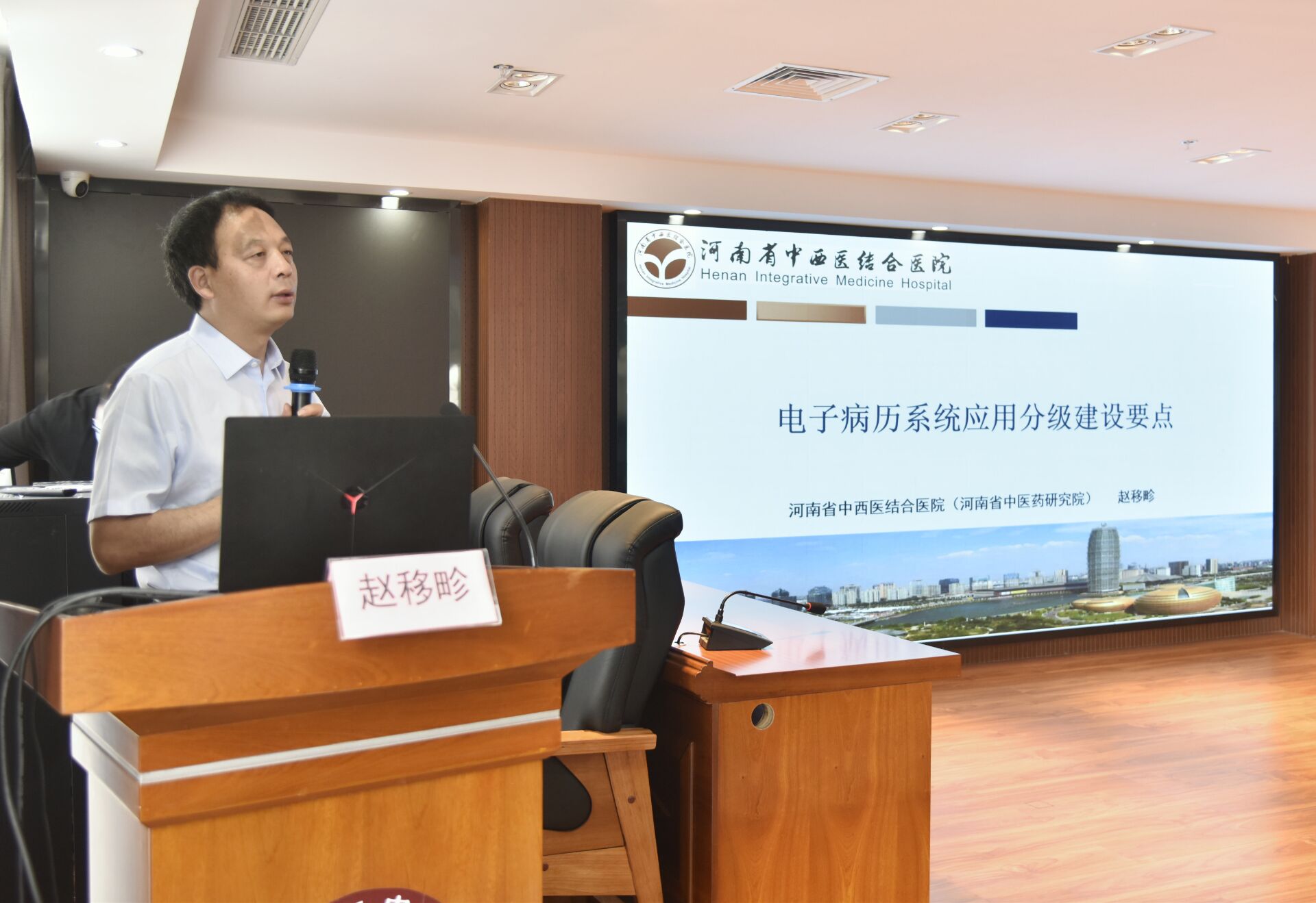 為做好我院電子病歷系統(tǒng)五級(jí)創(chuàng)建工作,5月24日下午,周口市中醫(yī)院在5號(hào)樓20樓會(huì)議室召開電子病歷系統(tǒng)五級(jí)創(chuàng)建工作推進(jìn)會(huì)。我院邀請(qǐng)河南省電子病歷評(píng)審組專家、河南省中西醫(yī)結(jié)合醫(yī)院副院長(zhǎng)趙移畛教授,河南中醫(yī)電子病歷應(yīng)用水平分級(jí)評(píng)價(jià)專家組成員、河南中醫(yī)藥大學(xué)第三附屬醫(yī)院信息科主任王新峰參加會(huì)議。周口市中醫(yī)院黨委書記史衛(wèi)東,副院長(zhǎng)魯恒心、副院長(zhǎng)孫俊、工會(huì)主席張紅梅及全體中層,全體醫(yī)生,全體責(zé)任護(hù)士參加會(huì)議。會(huì)議由副院長(zhǎng)魯恒心主持。