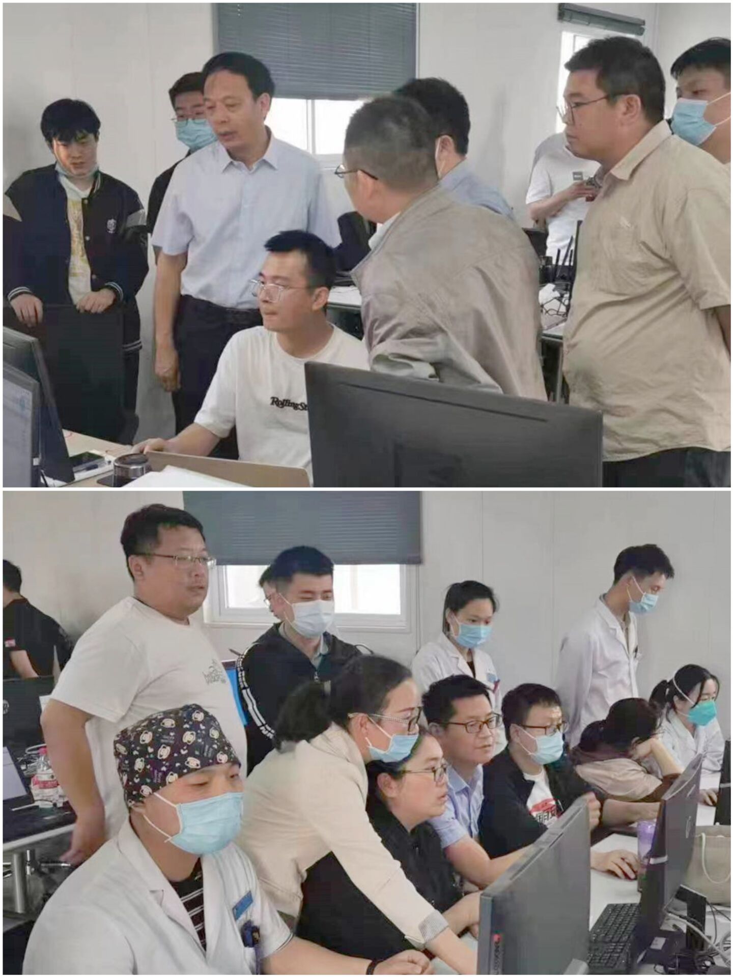 會(huì)后,趙移畛教授和王新峰主任到我院五級(jí)聯(lián)合辦公室對(duì)電子病歷系統(tǒng)功能應(yīng)用水平進(jìn)行現(xiàn)場(chǎng)指導(dǎo)。