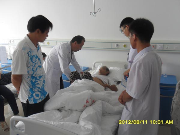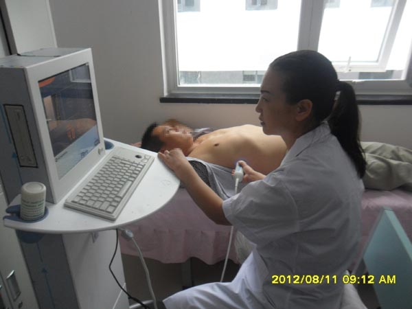 肝病附屬醫(yī)院院長(zhǎng)李偉帶領(lǐng)副主任付軍、護(hù)士長(zhǎng)沈金蘭,攜帶我院新引進(jìn)的先進(jìn)檢查設(shè)備——肝纖維化掃描儀,為當(dāng)?shù)鼗颊哌M(jìn)行診斷檢查。上午8點(diǎn)30分,慕名而來(lái)的病人絡(luò)繹不絕,李偉院長(zhǎng)和付軍主任熱情、耐心的為就診病人進(jìn)行診斷。隨后來(lái)到病房,對(duì)住院病人逐個(gè)進(jìn)行了診查,并指導(dǎo)管床醫(yī)生制定了治療方案。并針對(duì)個(gè)別疑難病例展開(kāi)了討論,對(duì)醫(yī)生們提出的問(wèn)題答疑解難。我院前往項(xiàng)城市中醫(yī)院義診的專家有史衛(wèi)東、高友才、張躍強(qiáng)、張洪等。