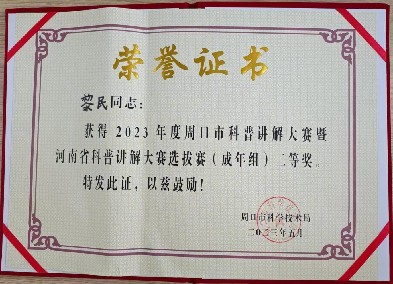 【喜訊】我院黎民、馬榮花在周口市科普講解大賽暨河南省科普講解大賽選拔賽活動中榮獲佳績