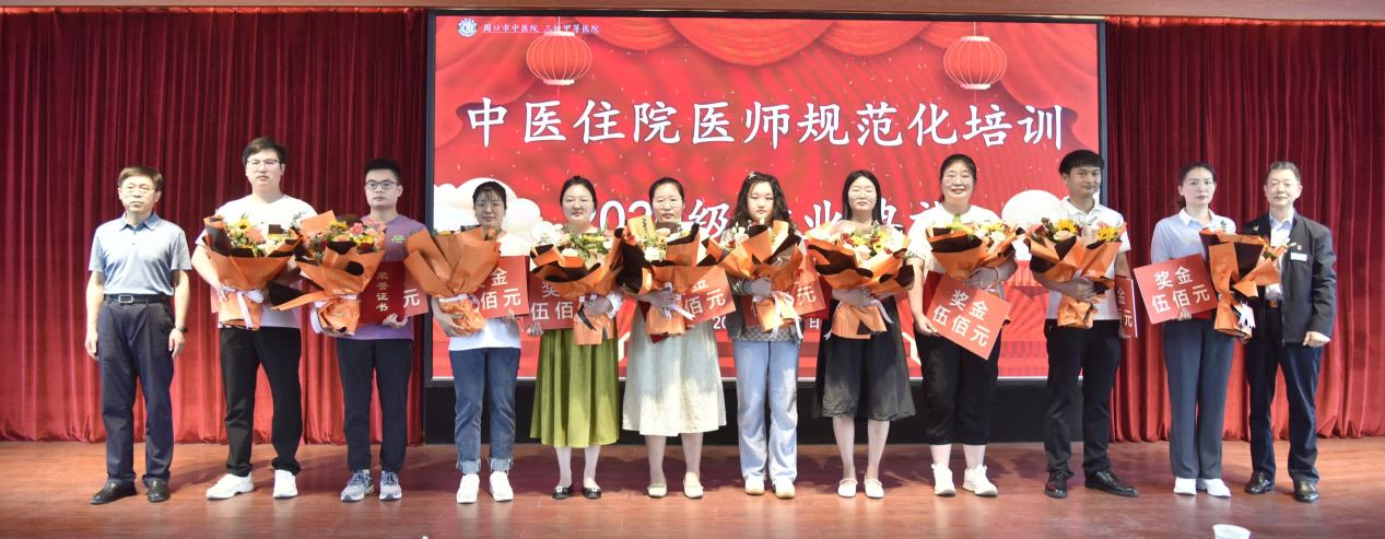 (史衛(wèi)東和胡維來(lái)為優(yōu)秀住培醫(yī)師陳賽、王永森、張燦燦、馬佳佳、梁樂(lè)樂(lè)、孫雯、劉美艷、鄭舒文、盧恩博和劉瑞潔頒發(fā)榮譽(yù)證書(shū)和獎(jiǎng)金)