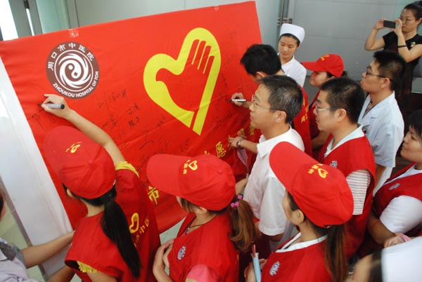 院長在成立儀式上作重要講話,要求全院志愿者要統一思想,提高認識;抓住關鍵,理解內涵;創新載體,富有成效;強化宣傳,營造氛圍。加強組織,強化工作。大力弘揚傳統文化,大力宣傳志愿者精神,人人獻愛心,人人做好事,人人做實事,確保此項活動開展的有聲有色,富有成效。儀式結束后,全體志愿者在隊旗上進行簽名。至此,周口市中醫院志愿者服務活動正式拉開序幕。(宣傳科)