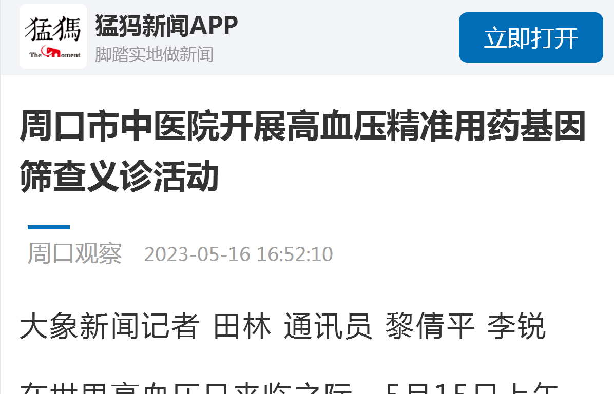 周口市中醫院開展高血壓精準用藥基因篩查義診活動