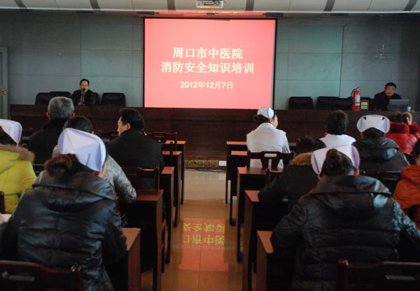 為進一步提高全員消防意識,加強醫院的消防安全管理, 2012年12月7日,我院聘請周口消防支隊張留東教官來我院進行消防知識普及專題講座,對全院干部職工進行消防安全知識培訓。