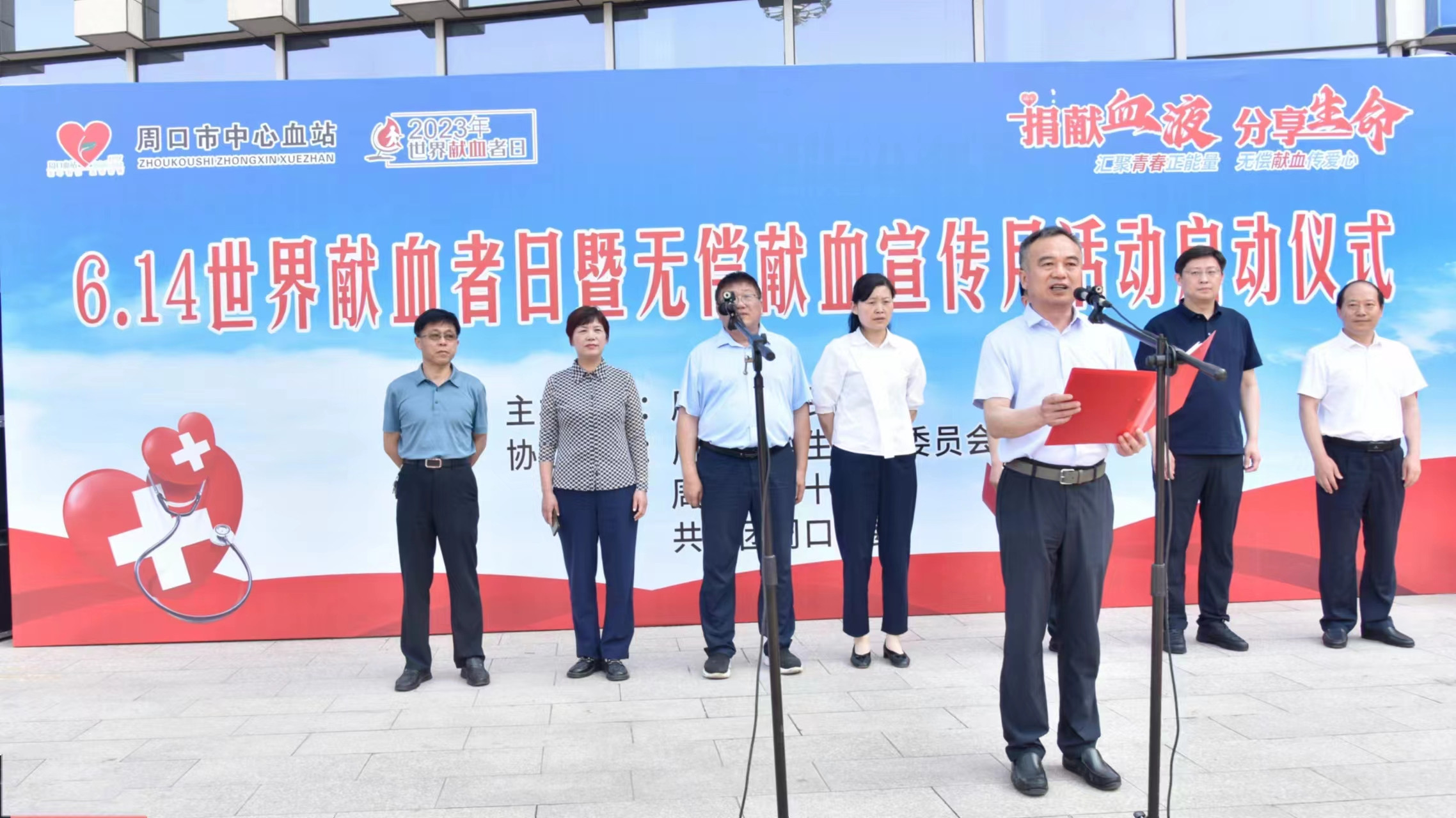 今年的6月14日是第20個“世界獻血者”日,當(dāng)天上午周口市中醫(yī)院黨委書記史衛(wèi)東帶隊,我院30余位來自臨床一線,行政后勤的工作人員參加了周口市“6.14世界獻血者日暨無償獻血宣傳日活動”啟動儀式。