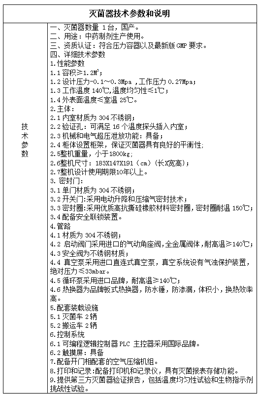 周口市中醫(yī)院制劑中心擬采購滅菌器一套。根據(jù)采購信息,結(jié)合產(chǎn)品市場的情況,特邀請有資格信譽好的供應(yīng)商前來參加本次采購活動。
