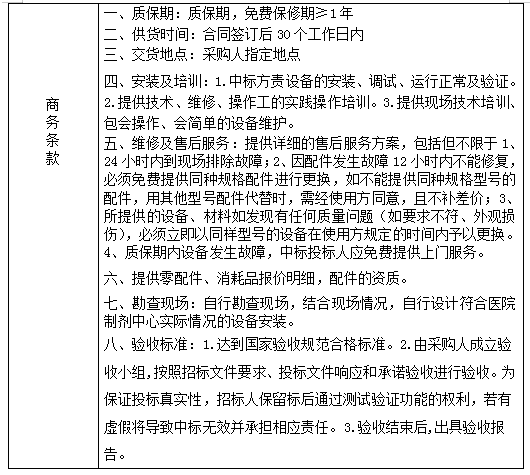 4.投標(biāo)人應(yīng)具有《醫(yī)療器械經(jīng)營許可證》或《醫(yī)療器械注冊證》。當(dāng)投標(biāo)人為生產(chǎn)廠家時,還需具有醫(yī)療器械生產(chǎn)許可證。投標(biāo)產(chǎn)品須具有有效期內(nèi)的醫(yī)療器械注冊證。