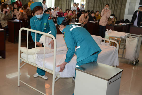 這次競賽全院各科室非常重視,在日常工作中,加強了晨晚間的護理和實時病房管理,積極與患者及家屬溝通,促進其與護士積極配合做好病房管理工作,各科護士在護士長和高年資護士指導下,放棄節(jié)假日和休息時間,加班加點練習操作。通過此次競賽規(guī)范了病房管理,促進了優(yōu)質(zhì)護理,提高了業(yè)務技能、心理素質(zhì)和責任心。在競賽活動中,ICU獲得第一名、外二病區(qū)獲得第二名、肝病醫(yī)院獲得第三名,競賽結束后,對獲獎科室進行了表彰。
