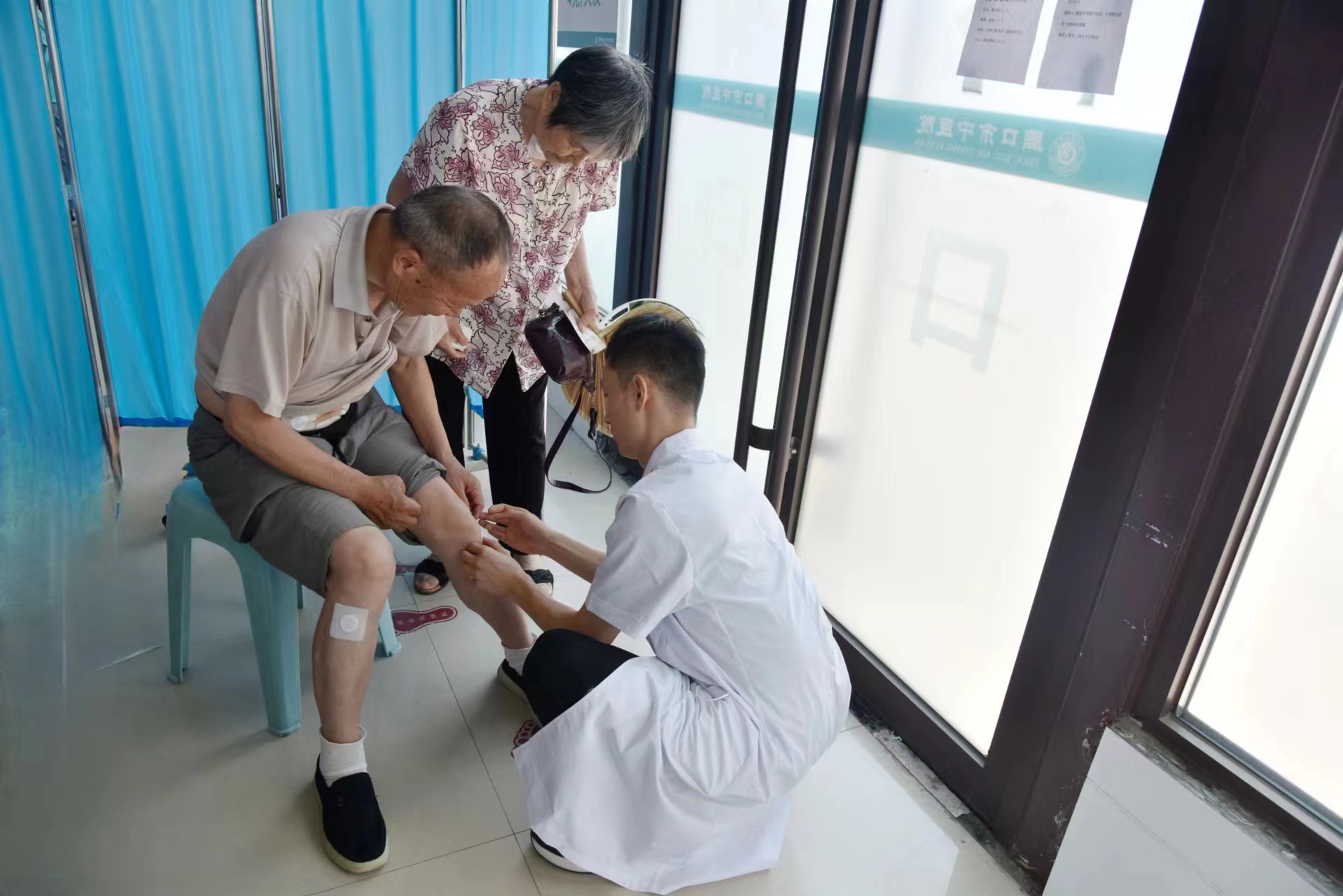 在來往的人群中不乏眼熟的面孔,一對來自商水縣的老夫妻已經連續九年來到我院進行三伏貼貼敷。據了解,這位奶奶患有慢性支氣管炎,最嚴重時一感冒就要住院進行治療,不僅影響自身生活,更是沒少花費醫藥費。九年前一次偶然的機會聽說我院開展冬病夏治三伏貼,可以治療氣管炎,就懷著對醫院的信任來到我院進行治療。第一年、第二年、第三年……每年都能感受到癥狀的減輕,就這樣,不知不覺已經堅持九年了。如今奶奶已經很久沒有出現氣管炎的癥狀了。她說“每年一入夏我就開始算著時間,要什么時候來貼三伏貼了。現在我已經很少感冒了,就算感冒了也不至于嚴重到要住院,多虧了咱中醫院的三伏貼,我感覺現在身體挺好的,還是大醫院靠譜!”奶奶的老伴兒最近幾年也一直跟奶奶堅持貼三伏貼,老兩口都覺得這是一項“有病治病沒病預防”的治療、保健方法。