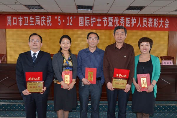 5月10日,在周口市衛(wèi)生局召開的慶祝“5·12”國際護士節(jié)暨優(yōu)秀醫(yī)護人員表彰大會上,我院劉勤建、趙韶光榮獲“醫(yī)德之星”稱號,李偉、袁少先、劉子航榮獲“優(yōu)秀醫(yī)生”稱號,張紅梅、徐亞鵬、韓玉榮、何雪花榮獲“優(yōu)秀護士”稱號。