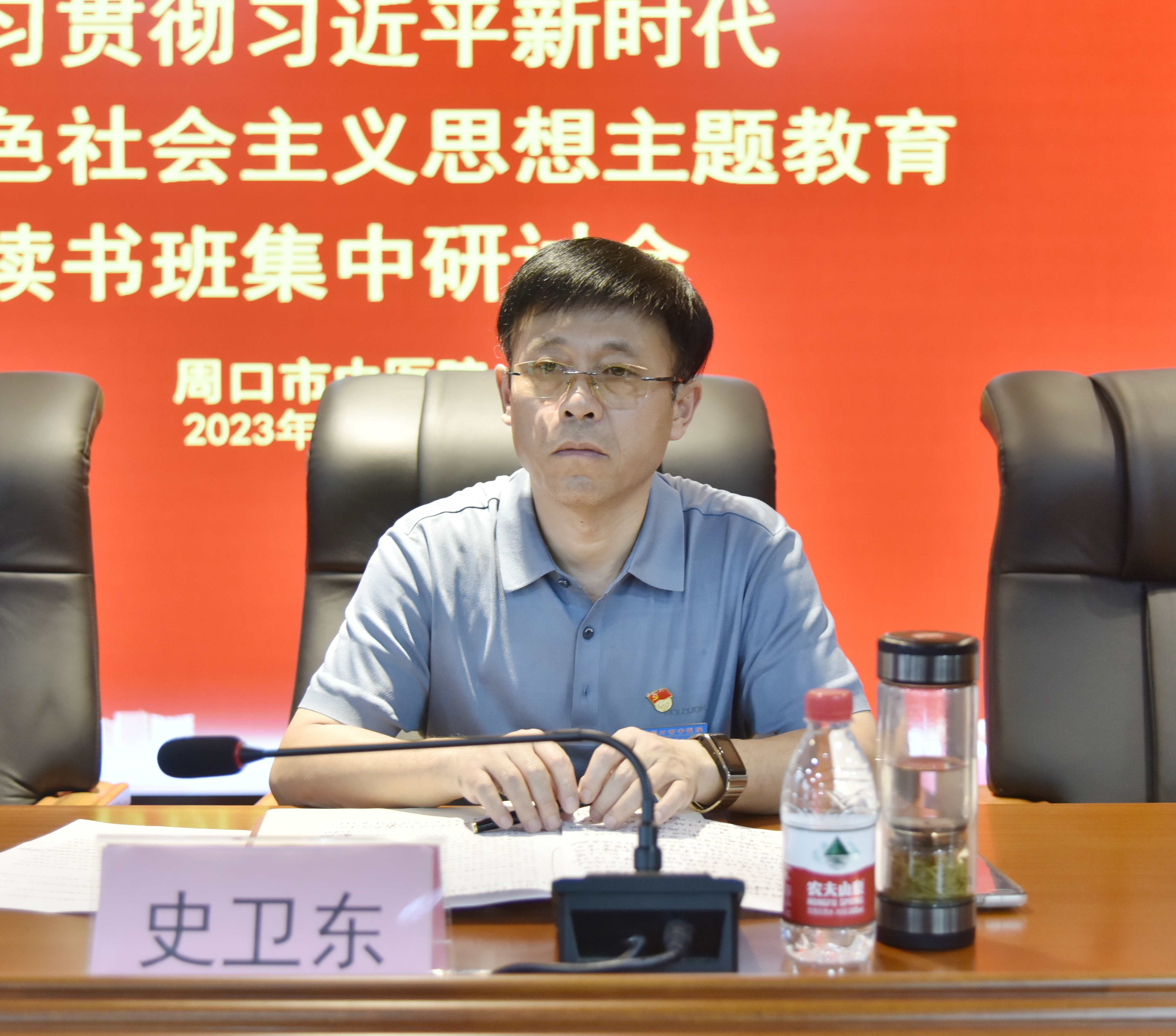 9月27日下午,周口市中醫院召開學習貫徹習近平新時代中國特色社會主義思想主題教育讀書班集中研討會,至此為期三天的主題教育讀書班圓滿結束。周口市中醫院黨委書記史衛東,黨委委員、工會主席張紅梅,黨委委員、紀委書記蔡華文,各黨支部書記,各科室主任、護士長及各職能科室負責人參加會議。