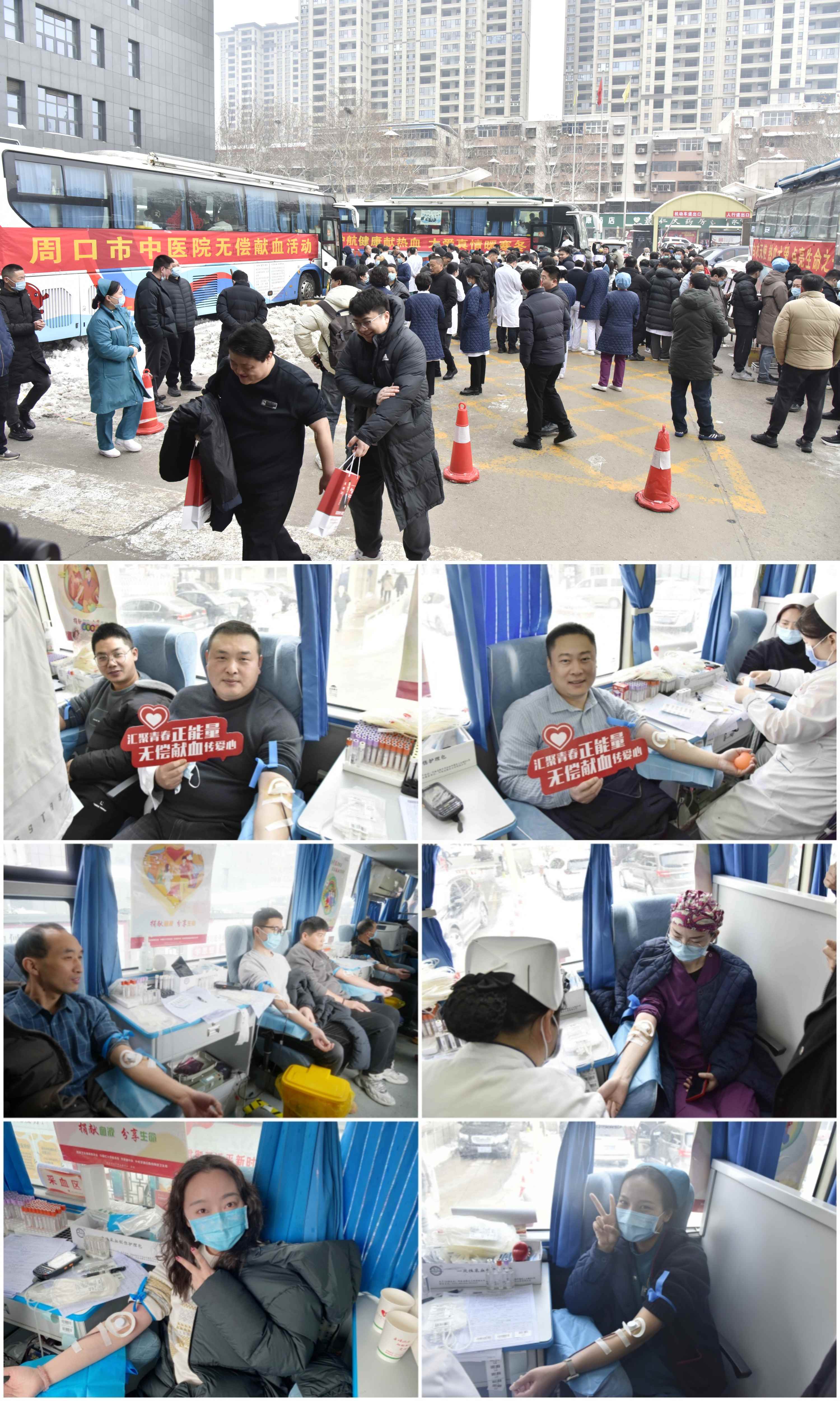 為有效緩解全市醫療用血壓力,保障春節期間醫療用血需求和安全,2月6日,周口市中醫院在醫院門診大樓前組織開展無償獻血志愿服務活動。周口市中醫院副院長魯恒心同志、工會主席張紅梅同志,周口市中心血站站長王峰同志、副站長申飛同志及來自醫療、護理、門診、醫技、行政后勤400余人參加了活動。活動由工會主席張紅梅主持。