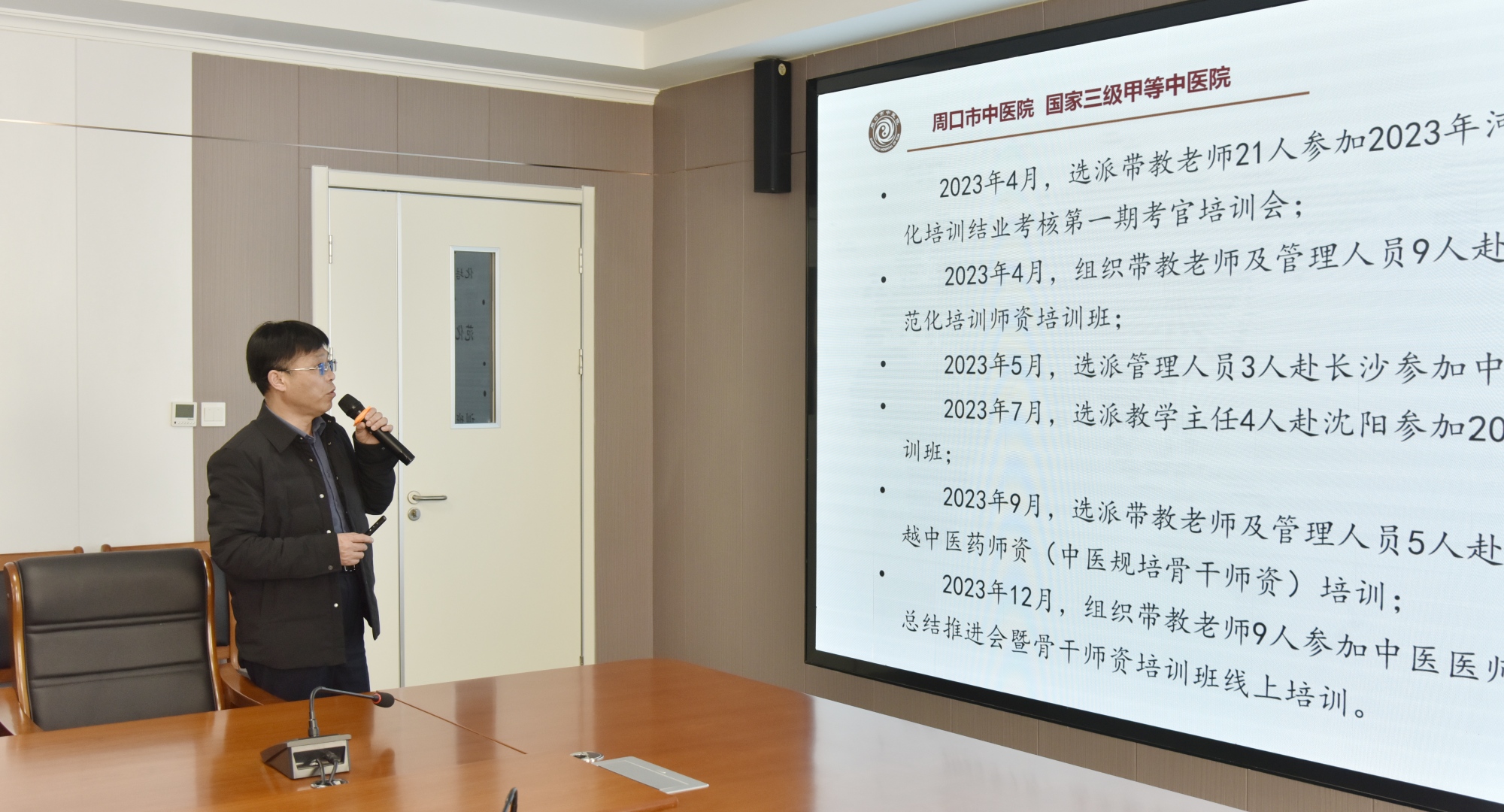 根據現場調研程序,首先組織召開調研匯報會。匯報會上,周口市衛生健康委中醫管理辦公室主任王志冰致歡迎辭,隨后周口市中醫院黨委書記史衛東匯報項目績效工作情況,緊接著調研專家組組長張璐鵬講話并布置現場調研工作。