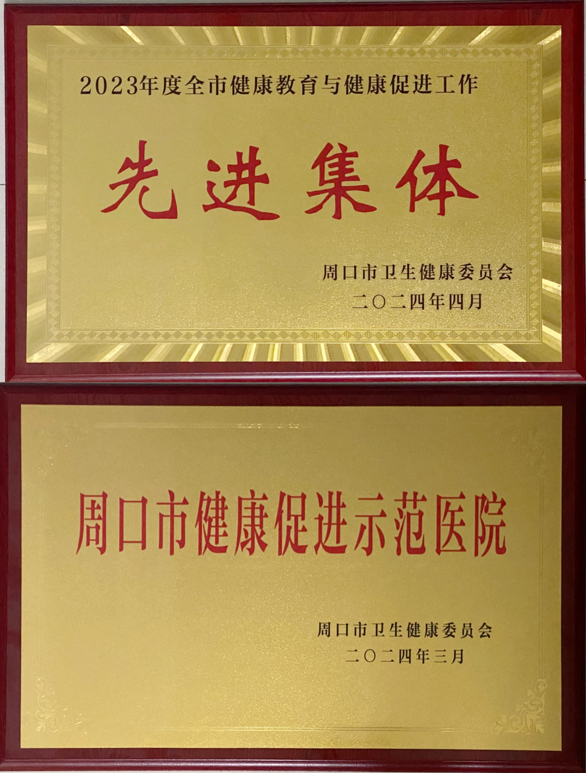 【喜訊】我院榮獲2023年度全市健康教育與健康促進工作先進集體及周口市健康促進示范醫院榮譽稱號