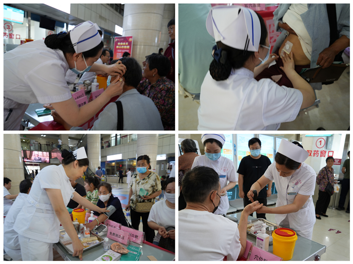 活動現場,醫務人員免費為前來咨詢的群眾測量血壓、血糖,向來往的居民發放炎癥性腸病相關宣傳頁。并宣傳炎癥性腸病的相關預防、治療、保養的小知識,為群眾解釋了(1)如何預防便秘發生;(2)如何預防腹瀉發生;(3)出現便血如何自查等一系列腸胃相關健康問題。對于腸胃不適的患者,針對性地提出科學的治療方案。同時,醫務人員為居民提供了穴位貼敷、耳穴壓豆等中醫特色項目體驗。