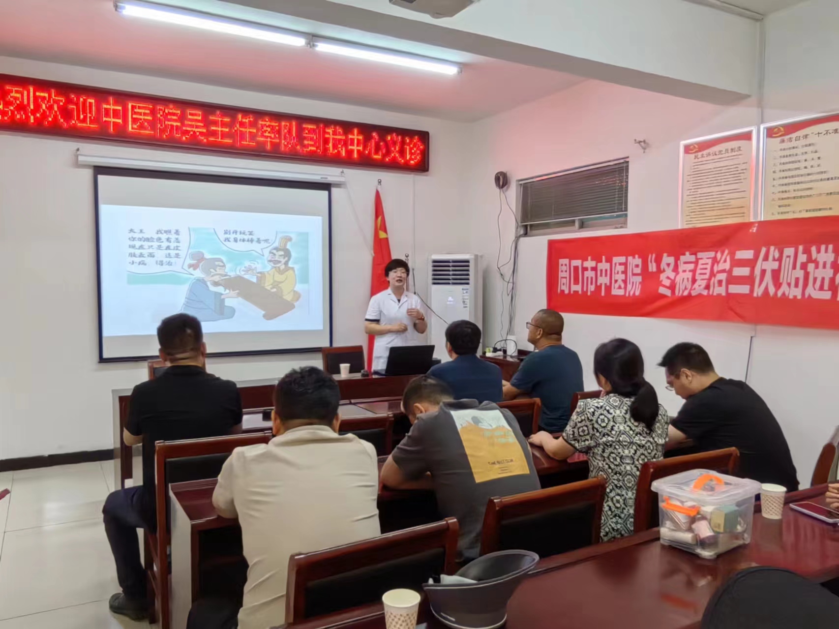 夏日炎炎,三伏將至。周口市中醫院治未病科,本著“服務百姓為健康保健護航、將中醫藥治未病理念傳入千家萬戶”的使命,開展“冬病夏治三伏貼健康科普講座及義診活動”。6月27日,周口市中醫院治未病科高軍麗、吳志敏一行人來到市交通運輸執法支隊進行健康科普講座及義診活動。