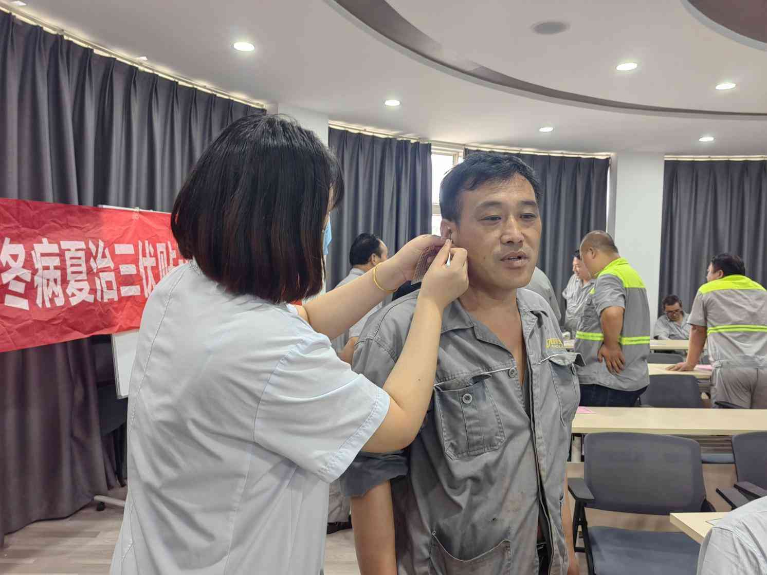 大家爭前恐后咨詢自己及家人的健康問題、請教各種中醫療法的具體功效及適用范圍,及常見疾病的相關知識。吳志敏主任、李方方醫師、栗炎醫師給廣大職工進行現場診治并提供治療方案及日常保健方案,對帶病職工進行了耳針、艾灸、針刺、刮痧等治療,效果立竿見影,也讓職工切實體會到了中醫治病的簡便廉驗的療效優勢。