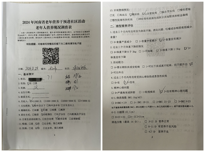 社區群眾積極配合完成2024年河南省老年營養干預進社區活動老年人營養現況調查表。