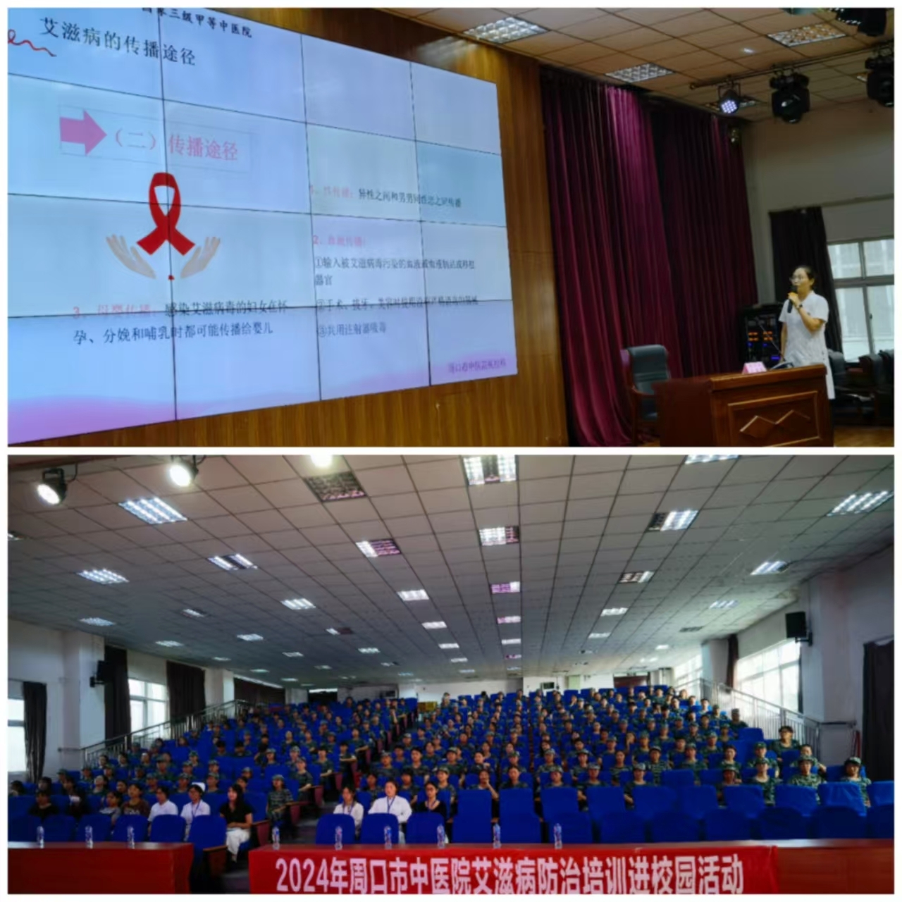 周口市中醫院專家團隊精心準備了課件,在學校多媒體教室進行艾滋病防治知識培訓宣傳,內容涵蓋艾滋病的概念、傳播途徑、危害及預防等知識。