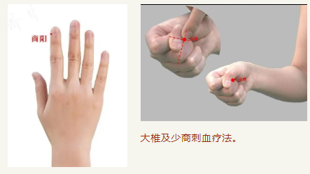 大椎及少商刺血療法。