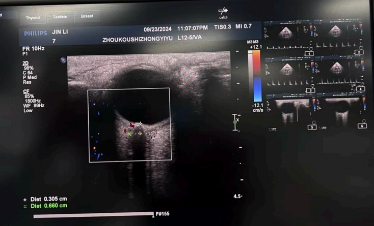 圖3:視神經(jīng)鞘直徑ONSD:評(píng)估顱腦?腫(操作者:吳威)