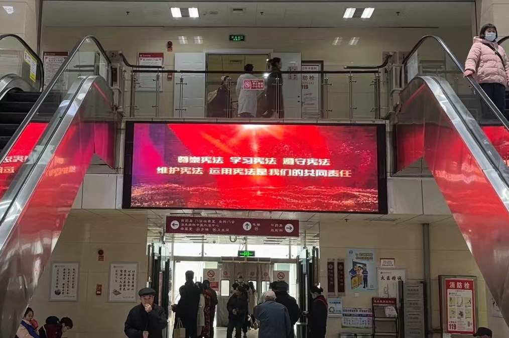 周口市中醫院通過電子大屏、流動字幕、展板、宣傳冊等形式把憲法宣傳元素融入到憲法宣傳活動,引導患者及廣大市民全面深入理解國家的法律制度,讓憲法為人民群眾看得見,找得到。