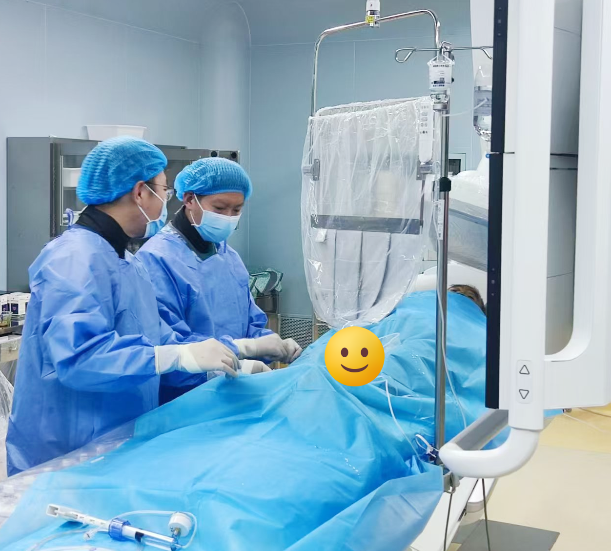 患者75歲王老先生,1月前因心絞痛發(fā)作于當(dāng)?shù)蒯t(yī)院診斷冠心病,因長期有“高血壓”、“2型糖尿病”,于當(dāng)?shù)蒯t(yī)院行冠狀動脈造影提示冠狀動脈左前降支近端彌漫狹窄伴重度鈣化,因鈣化較重,當(dāng)?shù)蒯t(yī)院建議患者外科搭橋,因患者恐懼“外科手術(shù)”,故選擇藥物保守治療,但心絞痛反復(fù)發(fā)作,日常活動受限。患者及其家屬飽受折磨,后前來我院心病科住院治療,李斌主任團(tuán)隊(duì)多次開展術(shù)前討論,結(jié)合患者家屬意愿,最終決定行前降支血管病變處沖擊波球囊應(yīng)用,王先生術(shù)后恢復(fù)良好!他激動地表示:“手術(shù)過程很快,幾乎沒有不適感,胸痛也完全消失了。感謝醫(yī)生和這項(xiàng)新技術(shù),讓我重獲健康!”