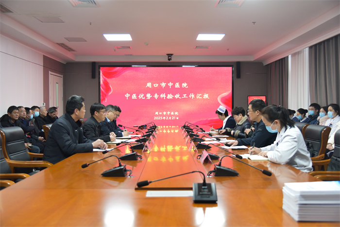 為進一步加強臨床重點專科建設,提升中醫診療服務能力,發揮中醫藥在保障群眾健康中的優勢作用,2月21日,由周口市衛健委中醫管理科科長王志冰、項城市中醫院副院長劉紀營、項城市中醫院醫務科科長李霞、我院護理部主任徐寶麗、精準藥學實驗室負責人郭俊浩組成的專家組,對我院中醫優勢專科進行現場考核、驗收。周口市中醫院黨委書記史衛東,黨委副書記、院長毛國璋,黨委委員、副院長王俊峰、醫務科科長劉勤建出席會議,肝膽脾胃科、腦病科、腫瘤科、腎病科、肺病科、骨傷科、中醫婦科、心病科、兒科、重癥醫學科的專科負責人、學術帶頭人、技術骨干參加會議。會議由院黨委書記史衛東同志主持。