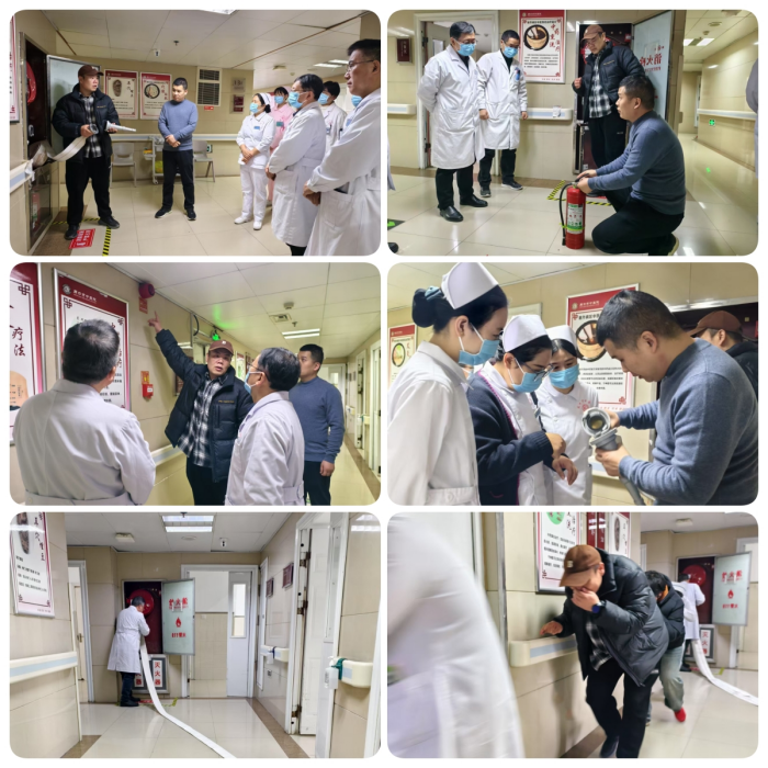 培訓中,保衛科業務骨干王磊和李東,分別組織講解了崗位火災危險性、滅火器與消火栓的使用操作方法、撲救初期火災的方法、組織人員疏散逃生的方法,明確了發生火災時如何報警及應急處置程序。并結合病區工作特點,講解了平時工作中消防安全管理的內容及日常消防安全知識。最后,帶領病區醫務人員和部分病患及家屬開展了滅火疏散演練,讓大家從實訓中感受氛圍、強化意識、提高技能。
