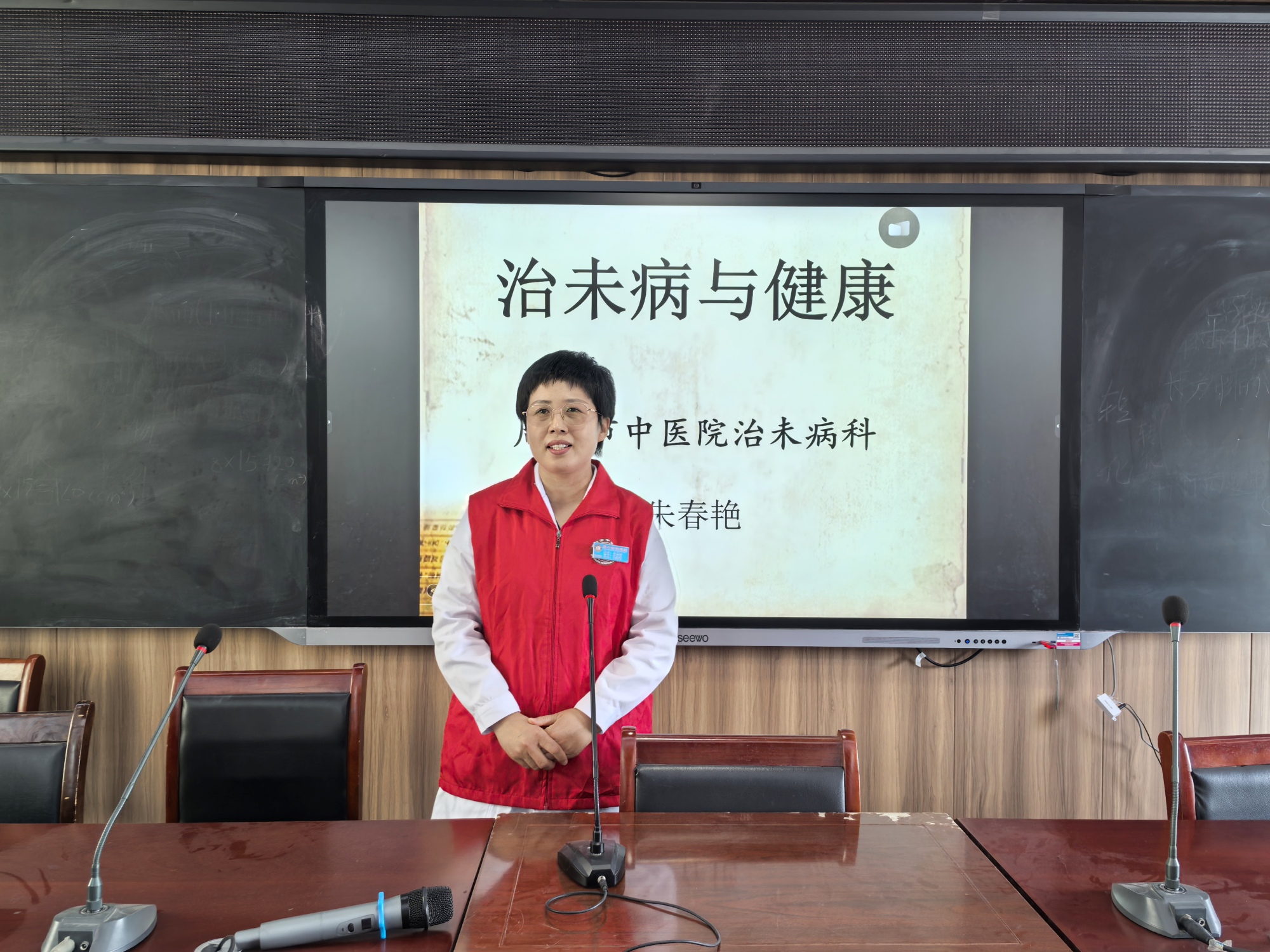 活動中,朱春艷護士長以《治未病與健康》為主題,用生動易懂的語言向學生們講解了中醫(yī)“未病先防”的理念,并結合季節(jié)特點和青少年常見健康問題,介紹了飲食調理、穴位保健、作息規(guī)律等實用知識。學生們認真聆聽,積極參與互動,現場氣氛活躍。