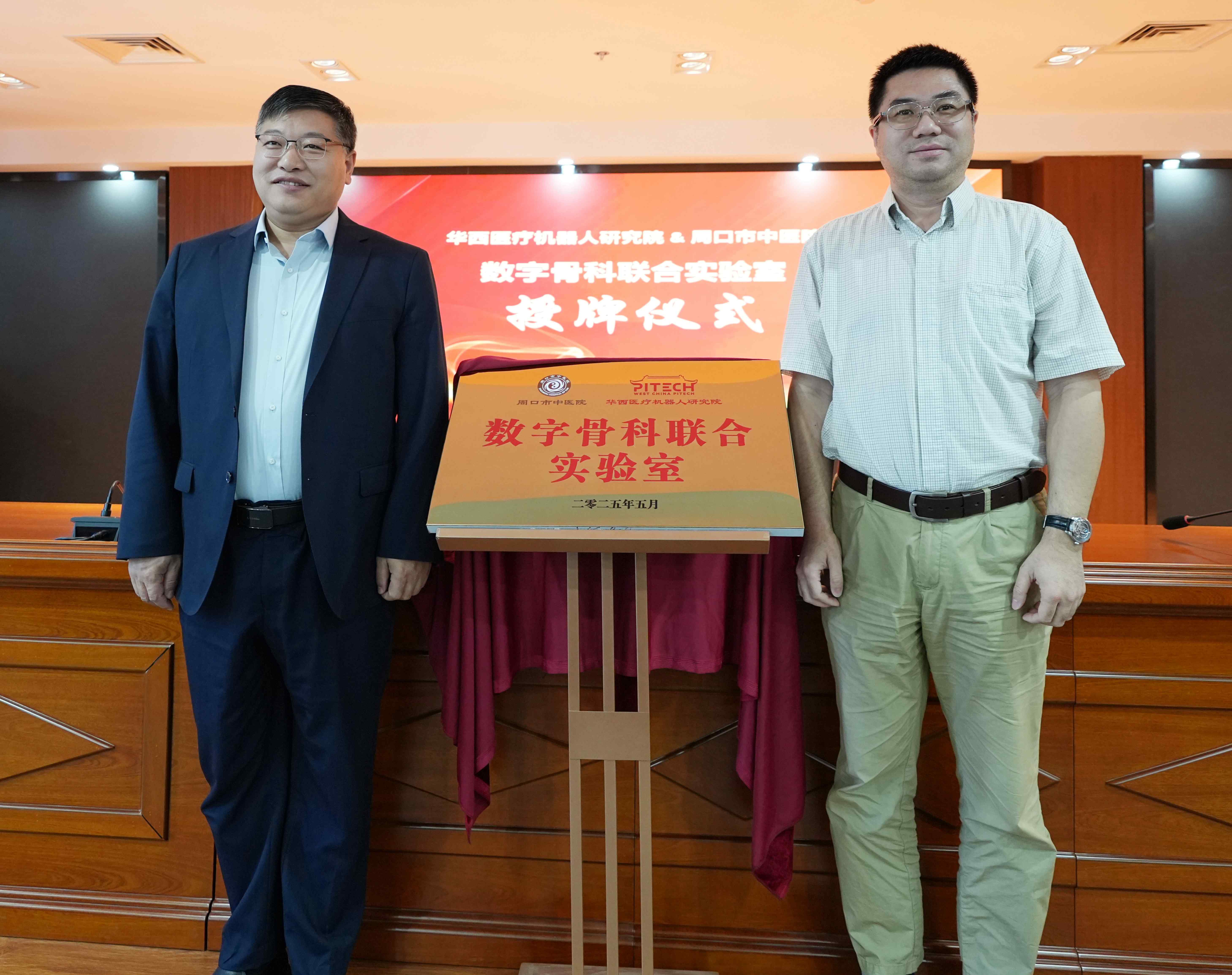 華西研究院吳文韜博士與周口市中醫院毛國璋院長共同為“數字骨科聯合實驗室”揭牌