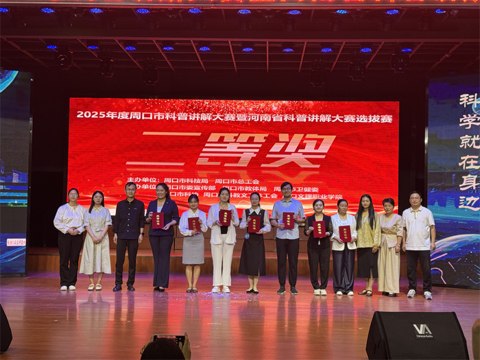 5月12-13日,由市科技局、市總工會主辦,以“科學就在身邊,科普從我做起”為主題的2025年周口市科普講解大賽暨河南省科普講解大賽選拔賽在周口文理職業學院舉辦,周口市中醫院肝膽脾胃病三病區王珺在此次比賽中榮獲二等獎。