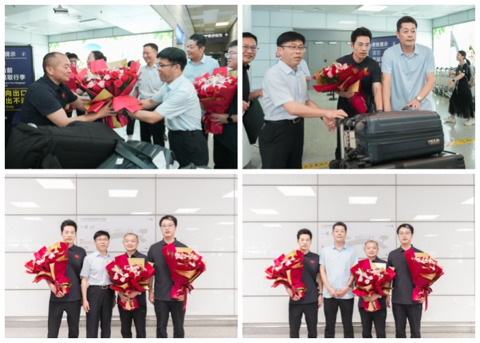 當天下午 13 時,在新鄭國際機場接機大廳,周口市中醫院第25 批援埃塞俄比亞醫療隊成員 —— 放射科副主任醫師張合意、康復中心主治醫師王曼曼、口腔科主治醫師高崇,終于見到了闊別一年有余的同事和家人。那一刻,思念化作緊緊的擁抱,現場掌聲雷動、笑語盈盈,大家紛紛為醫療隊員們獻上鮮花,送上溫暖問候。