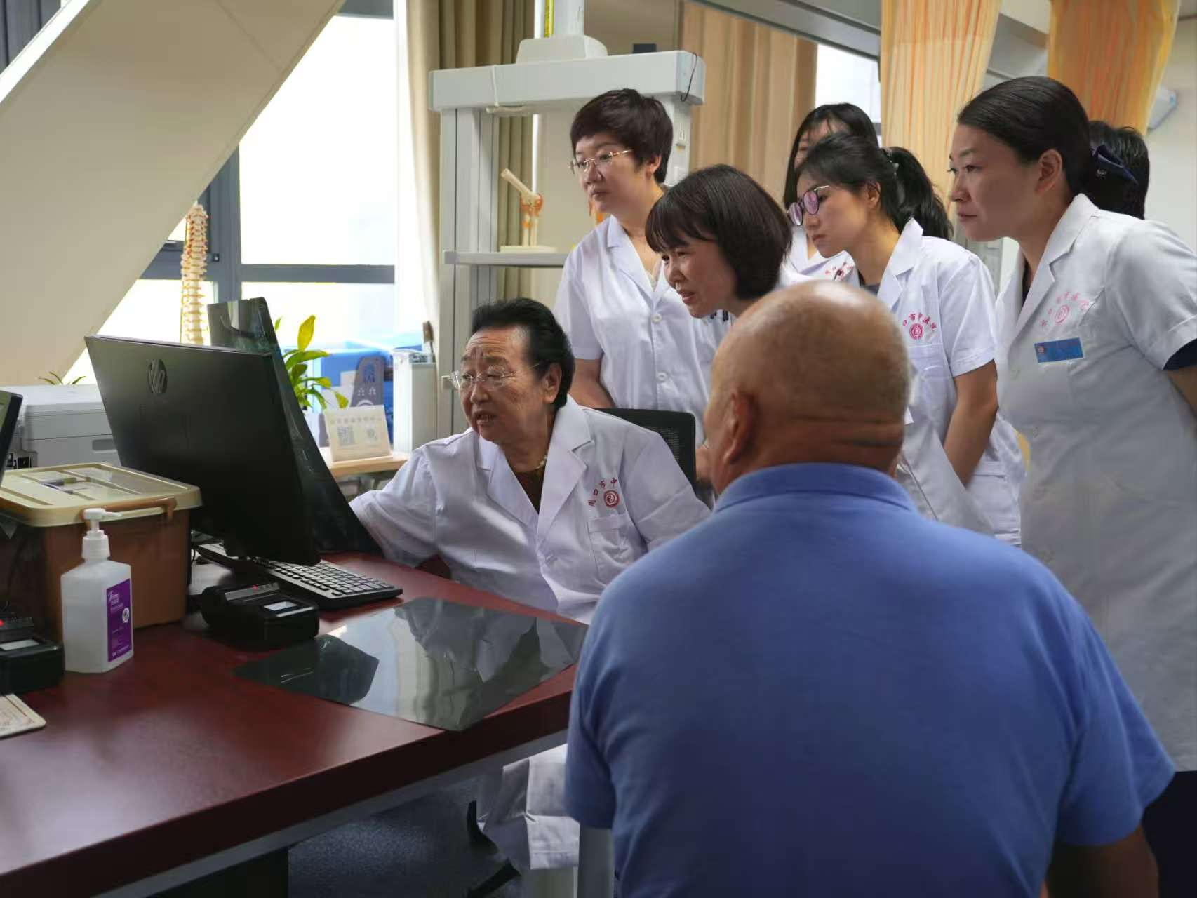 7月14日上午,非遺傳承人韓秀梅醫(yī)生來到周口市中醫(yī)院坐診。不到八點,治未病科疼痛診療室門口便排起長隊,不少患者帶著病歷和檢查報告早早等候。上午八點半,診療室正式開診,韓秀梅醫(yī)生身著白大褂,神情專注地開始了一天的診療工作,現(xiàn)場患者絡(luò)繹不絕,咨詢、求診者摩肩接踵,反響熱烈。