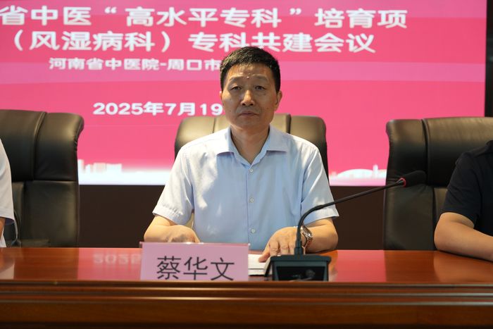 會議伊始,周口市中醫院紀委書記蔡華文發表了重要講話。蔡書記對各位專家的到來表示熱烈歡迎和衷心感謝,并強調了此次專科共建對于醫院發展的重要意義。他指出,風濕病科作為醫院的重點發展科室,承載著為廣大患者解除病痛的重任。通過與省級優勢專科的合作共建,能夠引入先進的診療技術和管理經驗,提升科室的綜合實力,為患者提供更加優質、高效的醫療服務。同時,也希望醫院的醫務人員能夠珍惜此次學習交流的機會,積極向專家請教,不斷提升自身的業務水平,為醫院的發展貢獻自己的力量。