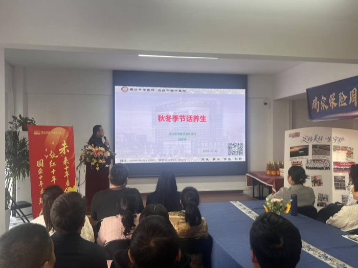 10月22日下午,周口市中醫(yī)院治未病科負(fù)責(zé)人楊彥峰帶領(lǐng)周文濤、崔亞麗到周口市瑞眾保險(xiǎn)開展“健康四季行秋冬潤(rùn)安康”主題健康講座,以專業(yè)中醫(yī)知識(shí)為市民解鎖秋冬養(yǎng)生密碼,用實(shí)用服務(wù)為大眾筑牢秋冬健康防線,彰顯醫(yī)院“治未病、保健康”的民生服務(wù)初心。
