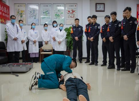 急診科主治醫(yī)師石騫文利用專業(yè)所長(zhǎng),為大家進(jìn)行了一場(chǎng)“單人徒手心肺復(fù)蘇培訓(xùn)”,將氣氛推向高潮,深入講解如何應(yīng)對(duì)心臟驟停等突發(fā)狀況,通過(guò)“手把手”的實(shí)操演練,民警們紛紛上前體驗(yàn),熟練掌握了這項(xiàng)與時(shí)間賽跑的“救命技術(shù)”,這將為民警在處置緊急警情、旅客安全出行時(shí)增添了堅(jiān)實(shí)保障。