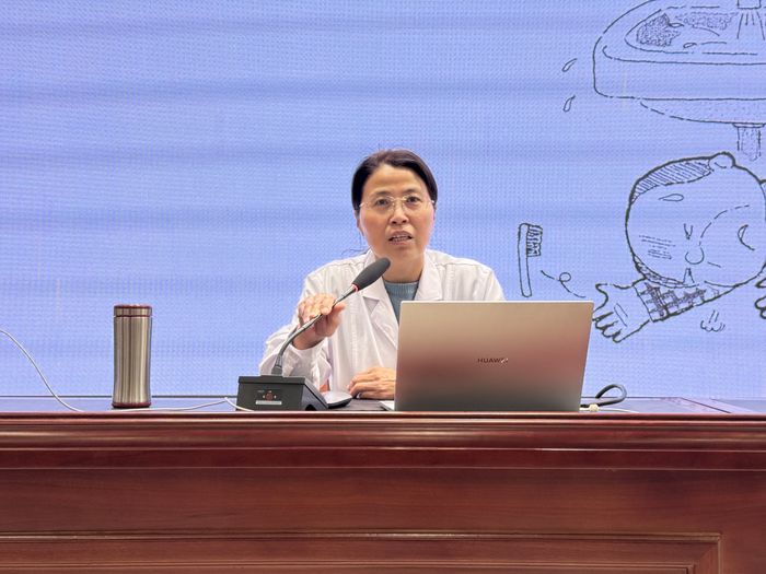 隨后,張艷霞主任正式開講。她圍繞“中風的早期識別”展開,用通俗的語言講解了中風的典型癥狀、快速判斷方法,同時重點科普了突發中風時的正確應急處理步驟,既專業又實用,讓在場教師對心腦血管健康防護有了更清晰的認知。
